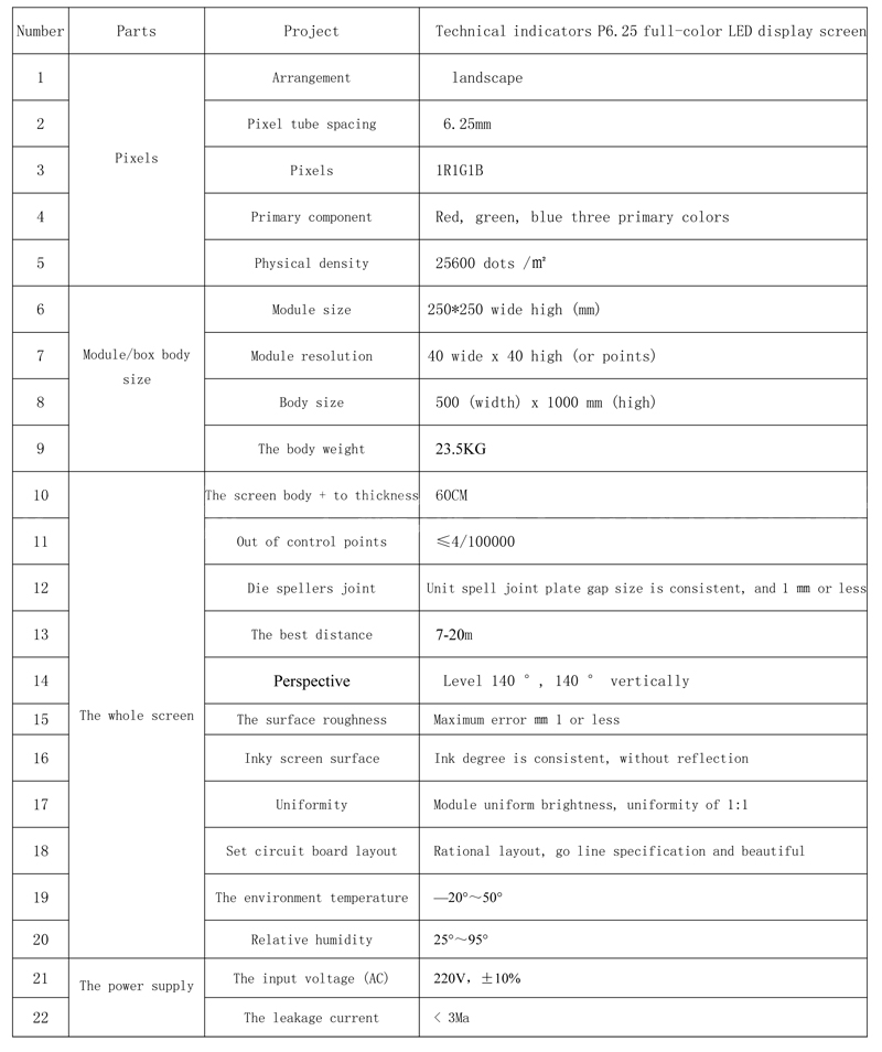 1), advanced system design is reasonable, the display effect is stable, easy installation and maintenance, professional antiskid processing module surface, floor tile is special, supporting the screen height can be adjusted flexibly, bearing 1 ton.