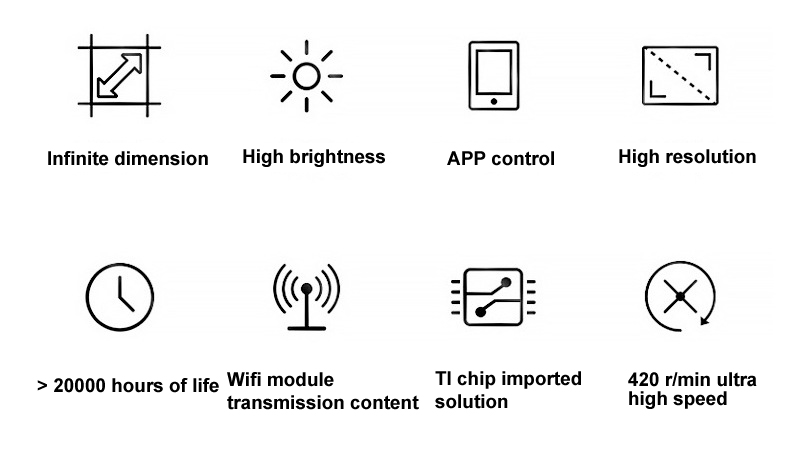 Principle: article LED lights, using the human eye persistence of vision principle, without borders and make the person feel the image is a state of suspension.